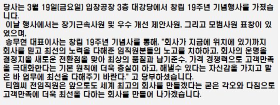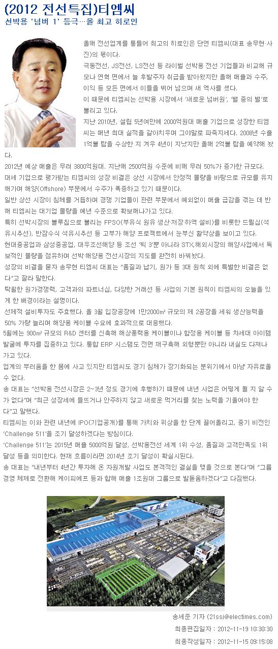 (2012 전선특집)티엠씨(전기신문, 11/19) 페이지 정보 작성일 : 12-11-20 조회수 : 25,135회 본문 목록 이전글티엠씨, 2억불 수출의 탑 수상(충청투데이, 12/6) 12.12.07 다음글TMC 한마음 체육대회(10.13) 12.10.16