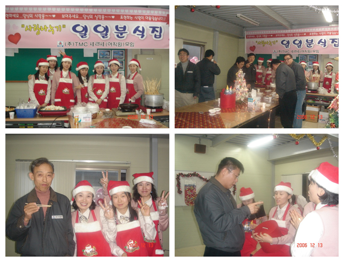 미디어 불우이웃을 위한 사랑나누기 행사실시 페이지 정보 작성일 : 06-12-22 조회수 : 27,026회 본문 TMC 여직원 모임인 새라새 주관으로 12월 13일~14일까지 양일간 열렸던 사랑나누기 일일 행사가 많은 임직원 여러분들의 관심과 후원속에 마무리 되었습니다. 이번 행사로 모아진 정성들은 KBS에서 주관하는 "희망2007 이웃돕기성금"에 기탁될 예정입니다. 감사합니다. 목록 이전글에너지데일리 '07.1.2자 기사 07.01.03 다음글대우조선해양 및 삼성중공업 해양 PROJECT 수주 06.12.18