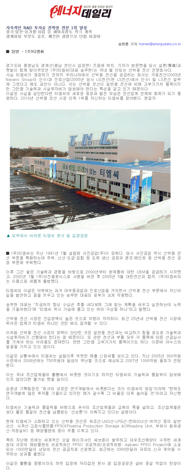 에너지데일리 '07.1.2자 기사 페이지 정보 작성일 : 07-01-03 조회수 : 26,463회 본문 목록 이전글2007년도 시무식 실시 07.01.17 다음글불우이웃을 위한 사랑나누기 행사실시 06.12.22