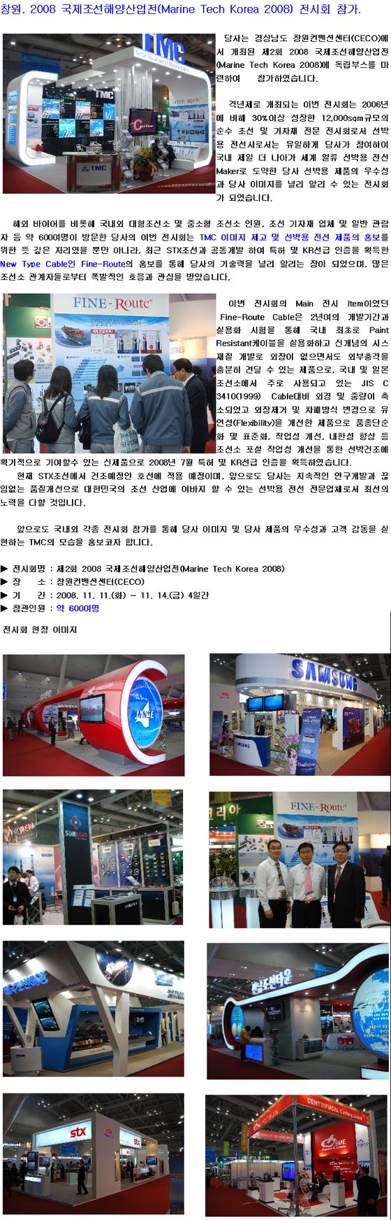 미디어 2008 국제조선해양산업전 참가(11.11~14) 페이지 정보 작성일 : 08-11-19 조회수 : 28,287회 본문 목록 이전글1억불 수출의 탑 및 철탑산업훈장 수상 08.12.03 다음글2008 국제조선 해양산업전 참가 안내(11/11~14) 08.11.03